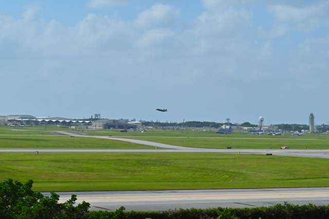 嘉手納飛行場の離発着を見ながら、巨大なチーズバーガーを楽しむ「道の駅かでな」