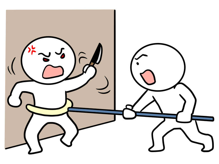 「さすまた」とは、2メートルから3メートルほどのしっかりした棒の先に、U字形の金属が付いているもの。