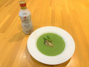 ホウレン草のグリーンが綺麗に出た彩りよいスープに仕上がります。