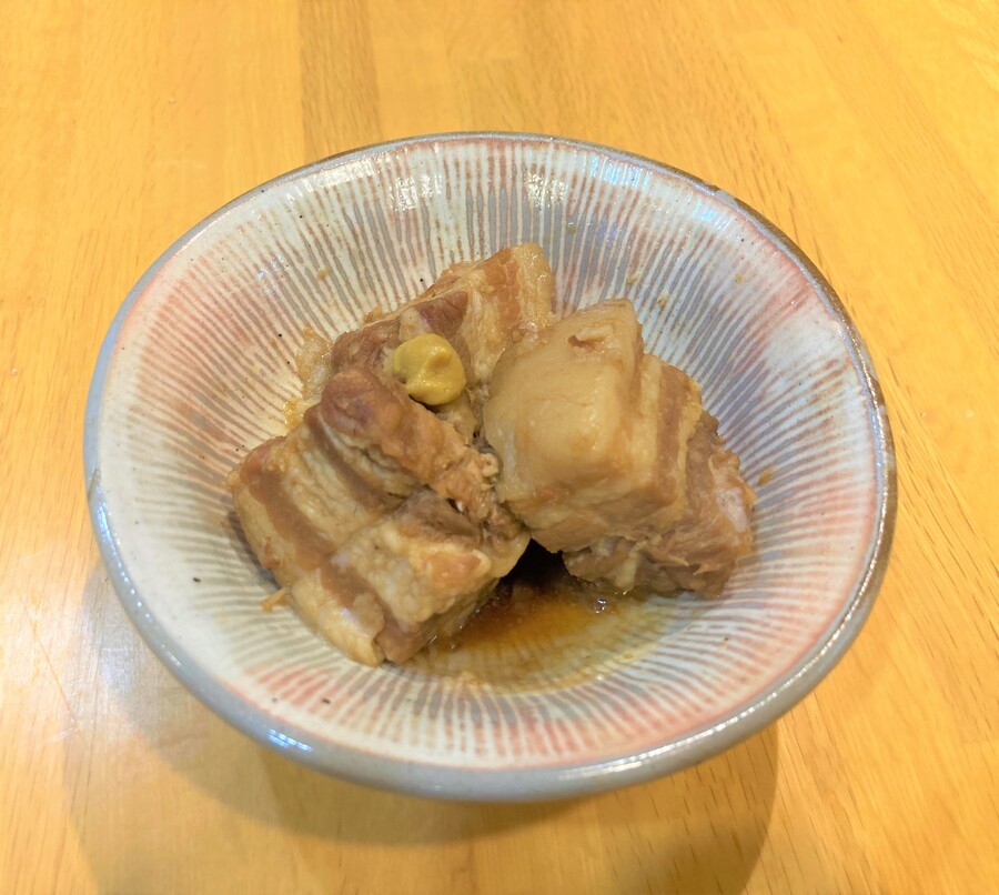①豚バラ肉は1個100gくらいの角切りにします。(8個)