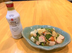かまぼこはイチョウ切り(うす切り)にします。