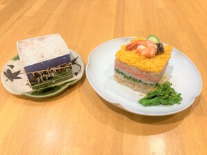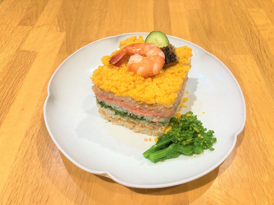 皿にのせて押し寿司のケースを外します。これを4つ作ります。
