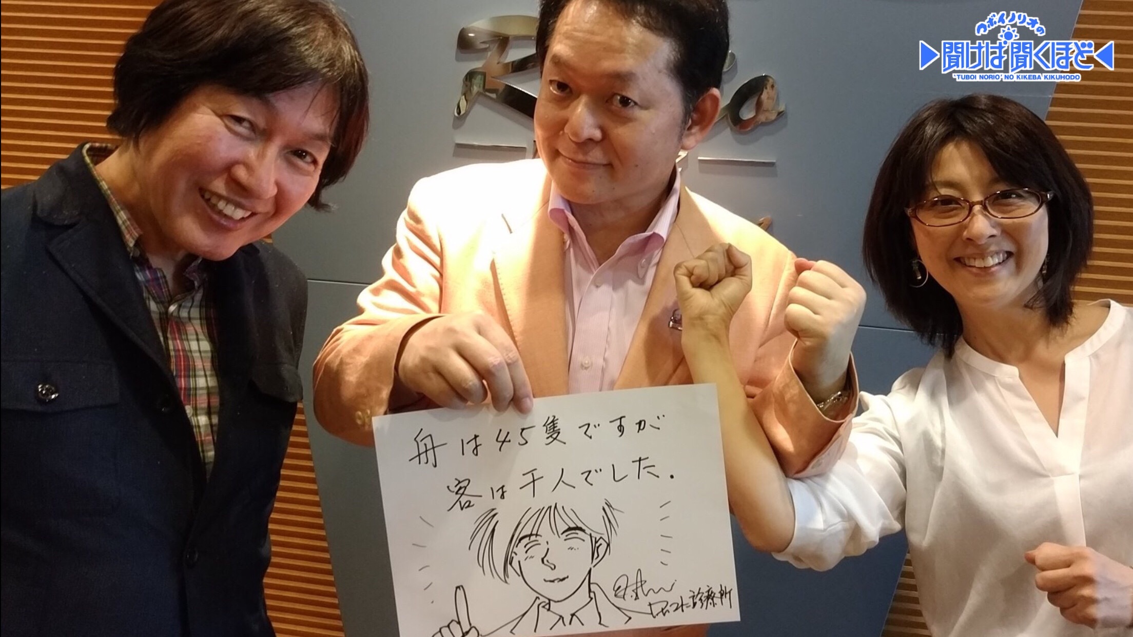 山田先生はヘビーリスナーであり、何度もゲストに来られているので、つボイと小高アナから「アンタ誰?」、「何をしに来た?」と言われ、有名マンガ家とは思えない程の扱われ方になってしまっていますが……。