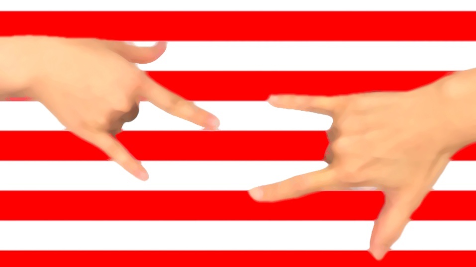 「手の向きが反対ではあるが、ザ・ビートルズ1966年のシングル『イエロー・サブマリン』のジャケ写の一つで、ジョン・レノンがこのジェスチャーを見せていることも指摘されています」