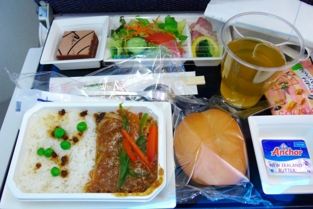 これは国際線のエコノミークラスで提供している機内食で、ハンバーグや唐揚げなどがラインナップされています。