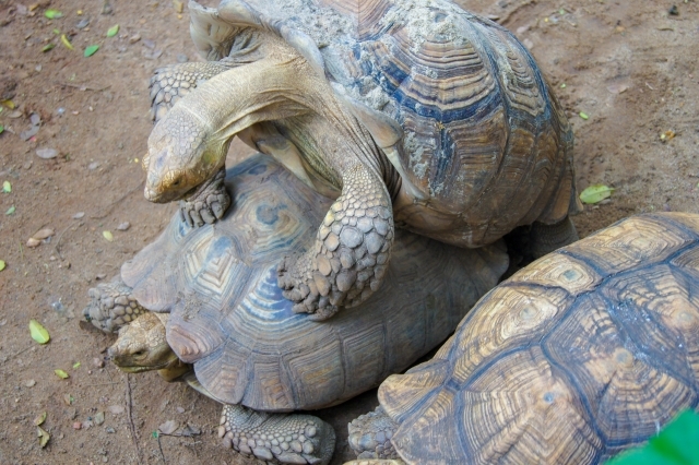 「ほとんどのリクガメのオスは、あの最中、何とも言えない動作と表情で、アアー、アアーと鳴いております。よかったら見て下さい」(Cさん)