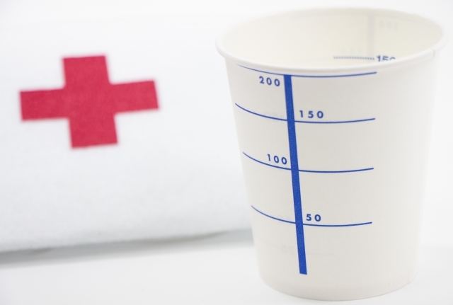 その人が指さす先には病院の名前と目盛りの入った紙コップが…。