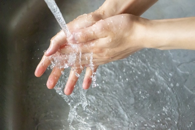 調べてみたら、手洗いなしでは100万個のウイルスがついています。流水で15秒手洗いしただけで1万個に減ります。石鹸を使って、10~30秒もみあらい、流水で15秒すすぐと、0.01%になります」
