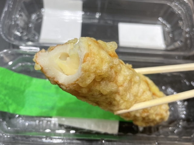 ちくわの中にポテトサラダを詰めて揚げた天ぷらですが、これが意外にお酒の肴に合うんです。
