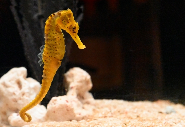 タツノオトシゴは縦に細長い形状から深海魚のように思われがちですが、実は温帯から熱帯の浅く温かい海にいるそうです。