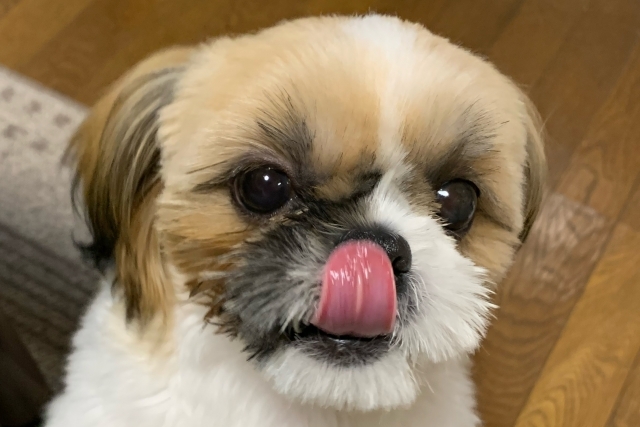 「13歳のシーズー犬です。ドッグフードを食べた後、なぜか私の手足顔をペロペロペロペロ舐め始めます。1日3回約10分、露出しているところがべたべたになります。よいしつけの方法はあるのでしょうか?」(Aさん)