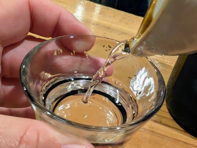 飲んだらすぐにおかわりが注がれるし、盃から手を離したり机に置いたりしたら酒がこぼれてしまう」