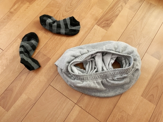 替えたことを忘れてまた替えて、穿いては脱いでのパンツがその辺にたくさん転がっているんだそうです。