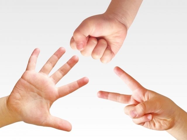 じゃんけんをする際につける親指のセンサーによって手の動きを感知し予測する仕組みのようです。