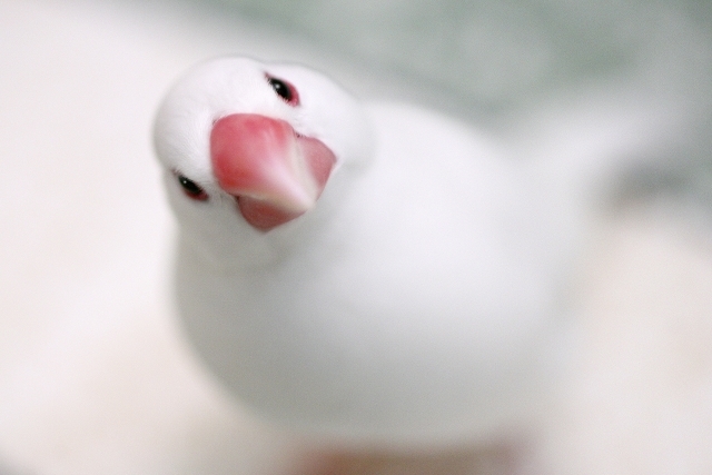 一般的なグレー色のさくら文鳥とは違い、真っ白な文鳥である弥富白文鳥。