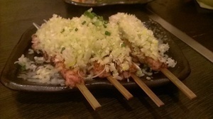 まずは「名物せせり」。ネギたっぷりで最高!!