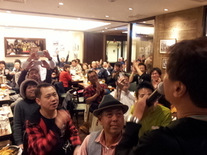 あっという間に予約が埋まったわけですが、激戦を勝ち抜いて参加された50名のリスナー、駆けつけてくれたキリンビールマーケティング愛知支社長兼三重支社長の村田さんと、いつもの合言葉、「やっぱりビールとえいば「キリン」に、昔ッから、決まッとる。」で乾杯!宴はスタートしました♪
