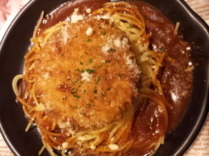そしてこの日から登場した新メニュー、殿様コロッケをのせたあんかけパスタ!