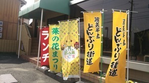 そんな中、飲食店の前でも「菜の花まつり」ののぼりを発見!