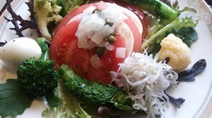 そして、菜の花やトマトなど、地元野菜のサラダ!