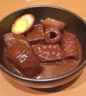 味噌おでんの味噌だれは、八丁味噌と、フルーツなど15種類の素材を煮込んだ特製の味噌だれ!