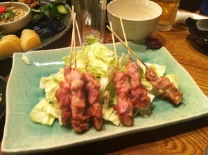 お店の看板商品「串焼き 3種」。ジューシーさがヤバかった。