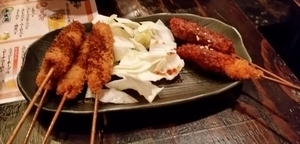 国産豚で手作りした名物串カツ!サクサクの衣に、ジューシーなお肉で、う・美味~い![]()
