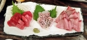お料理は、まずは、金沢から産地直送の刺身の盛り合わせ!