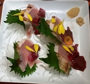 まずは、朝挽き鶏のタタキ、内臓の刺身盛り合わせ