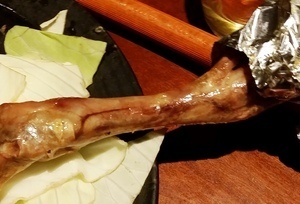 骨付きももの一夜干しは、少しスモークがかかっていて、濃縮した味が楽しめ、絶品!