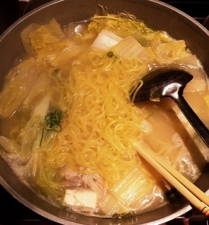 〆は水炊き鍋のラーメンと、さつまいものポテトスティック!