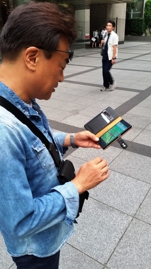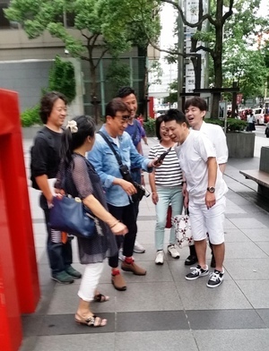 誠さんは、宿泊ホテルから、直接歩いて登場。