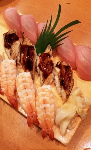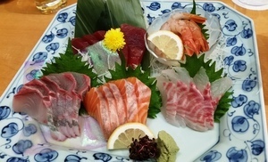 お刺身5種盛り(鯛、かんぱち、まぐろ、サーモン、赤海老)