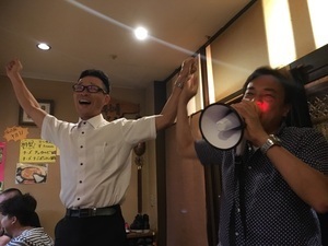 そしてなぜか手を掲げられるリスナーさん・・・