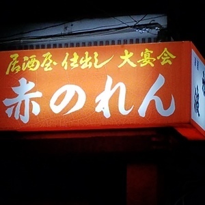 少し歩いて路地に入ると、居酒屋「赤のれん」が見えてきます。