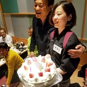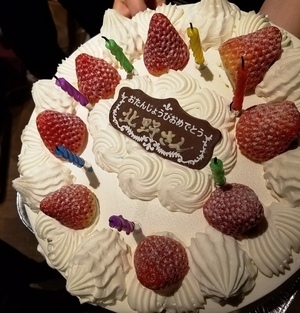 最後に、お店から先週、59才をむかえた誠さんにサプライズのバースデーケーキ