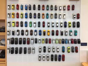 これ全部『トヨタ車のミニカー』でした!標準タイプのクルマだけでなく、上級グレードや純正オプションをつけてカスタマイズした仕様など、どれも本物そっくりの精巧な作りになっています!これなら実際のクルマがなくても、カタログと合わせてみればイメージが湧きますよね!
