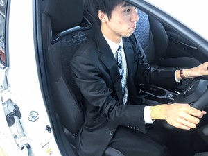 そして運転席に乗り込むと、体をしっかりホールドしてくれるシート。榊原アナは「スポーツカーに乗ったことがないので」と、緊張して体が前のめりになっていますが。。。本来はしっかり体を預けて運転に集中できる素晴らしい設計になっています!