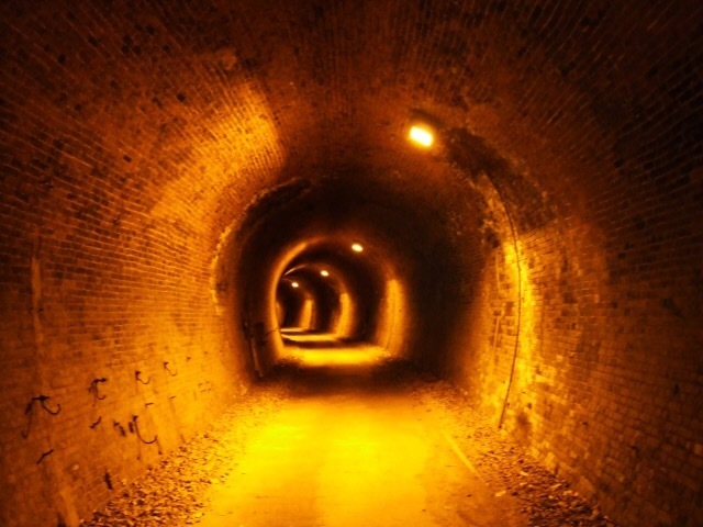 廃墟のトンネルがあり、車が通れないので歩いて行こうとしたら、すでにライトバンが止まっていたため、「先客がいるな」と思っていたところ、5、6人がトンネルから出てきて、慌ててその車に乗り込みました。