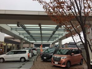 そしてもう1つ。今回のリニューアルで大きく変わったのが、お客様駐車場と屋外展示場に屋根が付いたこと!今日のような雨の日も、傘を差さずにゆっくり見学することができます。