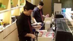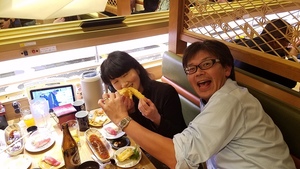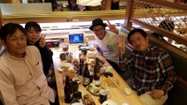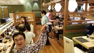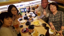 初の回転寿司マコ酒RUN!お店は貸切!さっそく乾杯!!