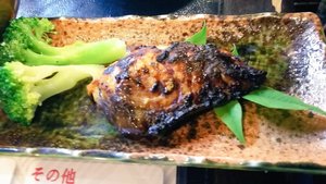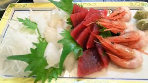 刺身、焼き魚、なす田楽、鳥の唐揚げ、