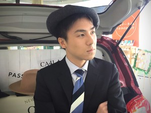 しかもただ並べるだけでなく、置いてある商品は、店内にあるQRコードを携帯で読み込むと専用サイトから購入することができます。普段はなかなか帽子屋さんに行かないという榊原アナですが、クルマと一緒においてあると手に取りやすいし面白い!といって片っ端から試着!!