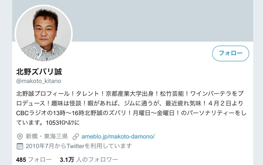 そんなこんなでこの1分後、北野は急遽自身のTwitterのプロフィール名を「北野ズバリ誠」と変えたのでした。