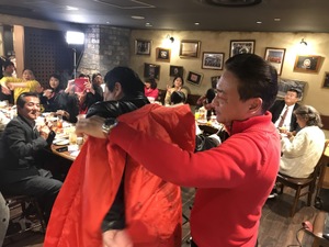 最後は誠さんから、赤いちゃんちゃんこをかけた