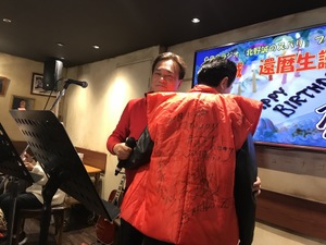 誠さんも還暦ということで、赤いちゃんちゃんこに袖を通して登場です!!