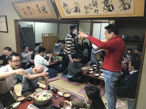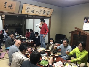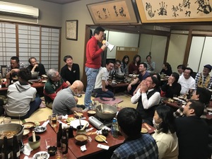 40人の参加者がぎゅっと詰まったお座敷でのマコ酒RUN。