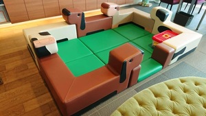 今回のリニューアルでもうひとつ大きく変わったのがキッズコーナー。動物の形をしたソファーで囲まれたスペースでブロック遊びができたり、柔らかいマットが引いてあるのでちょっとくらいなら飛んだり跳ねたりしても大丈夫かも?!