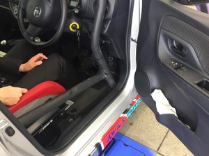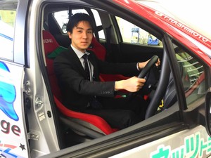 さらに橋本さんのご厚意で、運転席に乗せてもらうことができました。見た目はVitzですが、さすがレース用だけあってシートは体がすっぽり包まれるスポーツタイプ。シートベルトだって全く違います!