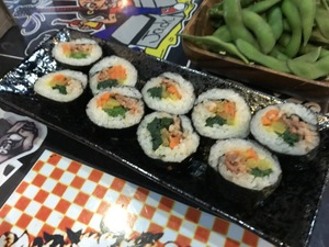 まずは、枝豆と、花束サラダ!さらにキンパ巻き!